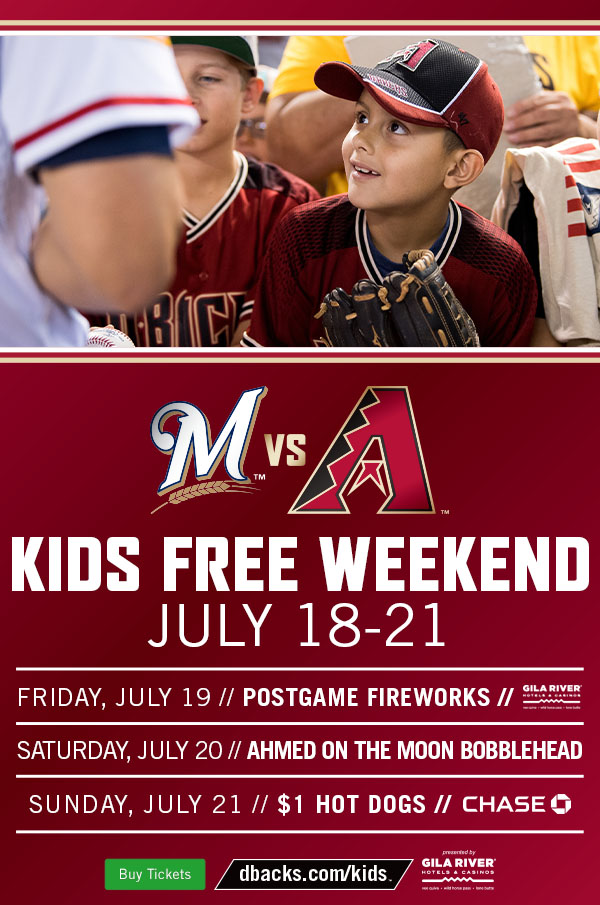 Kids (15 or younger) get in free to Dbacks games this weekend! You get two free child tickets with each paid adult ticket. Depending on which day you go, you also get a fireworks show, bobblehead, $1 hot dogs, or pinata fun. Go here for full details and to purchase tickets. Make it a fun… Read More »