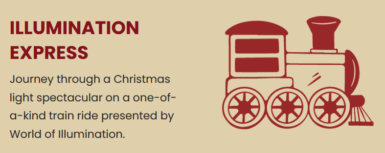 You will see over a million lights onboard the Illumination Express. The lights are synchronized to your favorite holiday tunes.