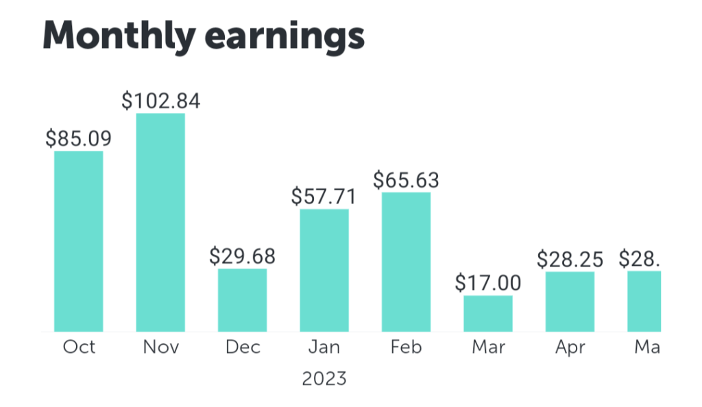 I’ve had months where I’ve made very little, but I’ve also make more than $100 from time to time.