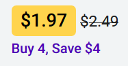 They have started making it easy to tell if you’re choosing a Mega Sale item…sometimes.  It will say “Buy 4, Save $4” (or similar) by the listed pricing.  You will pay less than the yellow listed price if you buy AT LEAST the required number.  No need to buy in exact multiples anymore!  For example, for the $1.97 shown in yellow, you would really only pay 97¢ with the $1 that would come off, if you buy at least 4 items that are marked the same way, which are included in the sale.