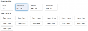 You can add items to your cart anytime, to keep a running grocery list.  Items can be saved and are able to be viewed or modified each time you log in.  When you’re ready to order, you are can schedule a pickup three days beyond the current date, so you usually have four days to choose from when scheduling your pick up.  After you choose at least one item, you can click “Checkout Now” to see what the availability is.  Times near me seem to be 7 am-8 pm.
