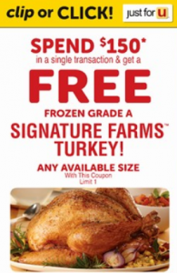 If you have a bunch of other shopping to do, spend $150 at Safeway or Albertsons, get a Signature Farms turkey free.  You can cut their ad coupon or load the coupon here or from their app.  (Make sure you select the right store since both stores use the same login.)